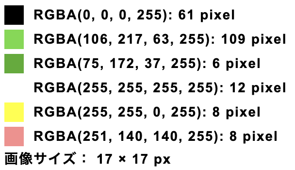【ドット絵に使用している色と色別のピクセル数】